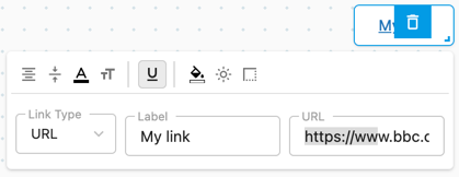 - Etichetta: Inserisci il testo che apparirà per il link.