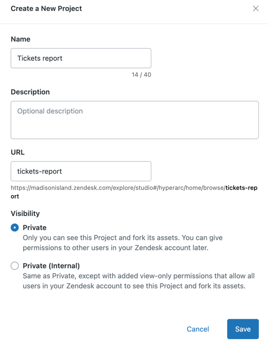 Le autorizzazioni per i progetti possono essere private o solo Zendesk: