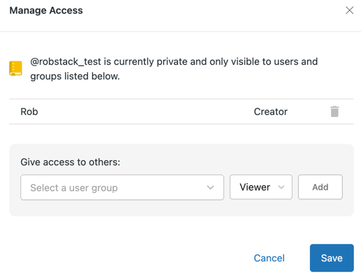 - Nella pagina Gestisci accesso, scegli l’utente o il gruppo a cui vuoi concedere l’accesso e scegli il livello di accesso di cui ha bisogno.