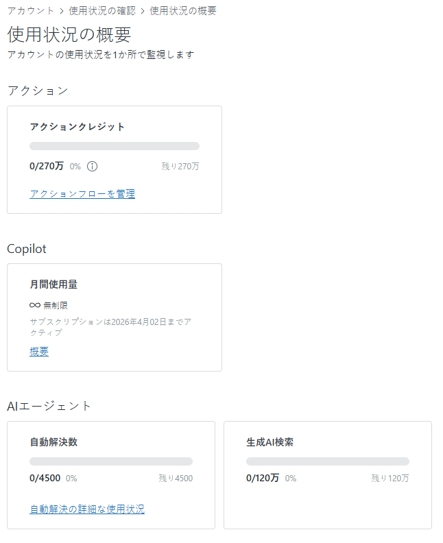 Copilot AIの使用状況を確認することで、月間利用枠の残りを把握できます。