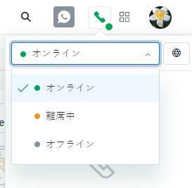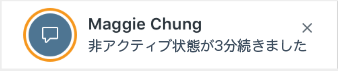 - エージェントのステータス(オンライン、離席中、非表示)および応対中のチャットがページの上部に表示されます。