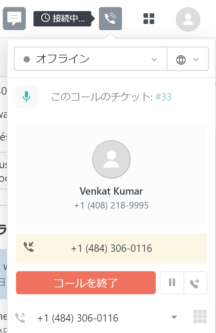 エージェントは、チケットからのコールを転送、一時停止、または終了できます。 |