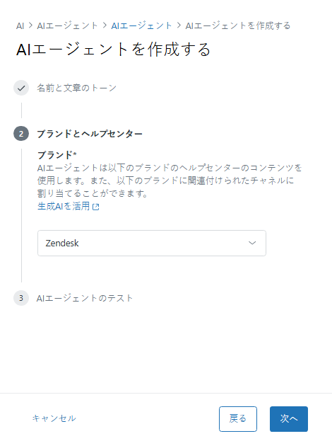 - 「ブランド」のドロップダウンで、AIエージェントに適用するブランドを選択します。
