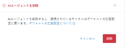 AIエージェントを作成すると、そのチャネルでAIエージェントを回答者として設定できるようになります。AIエージェントを特定のチャネルに追加して公開するまでは、そのチャネルではデフォルトの応答が有効になっています。
