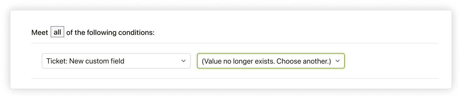 これらの動作は、チケットフィールドまたはユーザーフィールドのタグが変更された後、トリガまたは自動化がまだ修正されていないときに発生します。