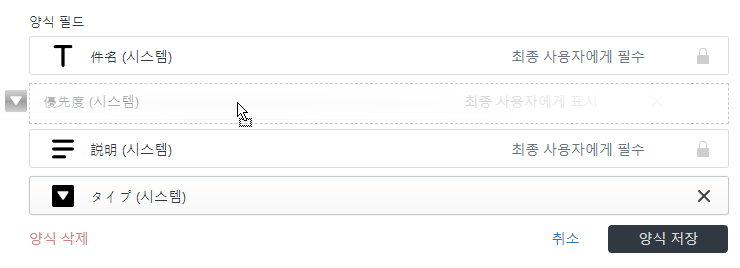 티켓 양식에는 몇 가지 시스템 필드가 기본적으로 포함되어 있습니다. 유형 및 우선 순위를 제외한 시스템 필드를 제거할 수 없습니다.