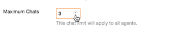 - 브로드캐스트 라우팅 방법을 사용하거나 배정됨을 사용하되 사용자 지정 제한 확인란을 선택하지 않는 경우 각 상담원의 프로필에서 채팅 수 제한을 설정합니다. 관리 > 상담원 아래에서 편집할 상담원을 선택하고 채팅 수 제한 필드에 값을 입력합니다.