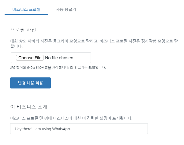 비즈니스 프로필에 비즈니스에 관한 정보를 포함할 수 있습니다. 이러한 세부정보는 WhatsApp에서 고객에게 표시됩니다.
