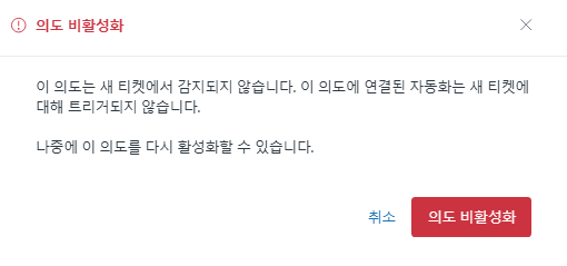 필요에 따라 의도 값을 재활성화할 수는 있지만 Zendesk에서 비활성화한 의도는 재활성화할 수 없습니다.
