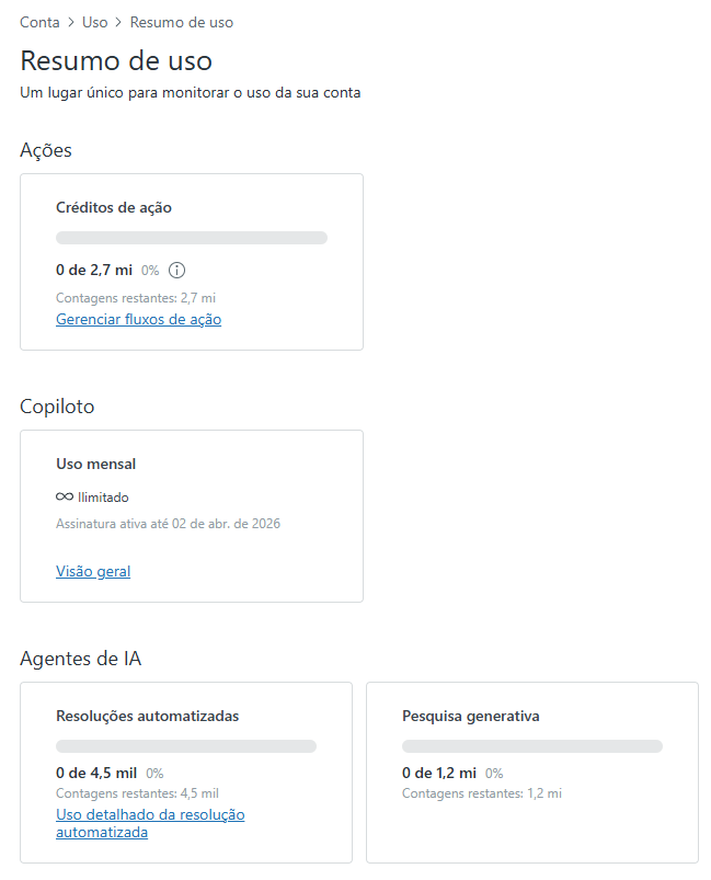 Você pode monitorar seu uso da IA do Copiloto para determinar quanto resta da permissão de uso mensal.