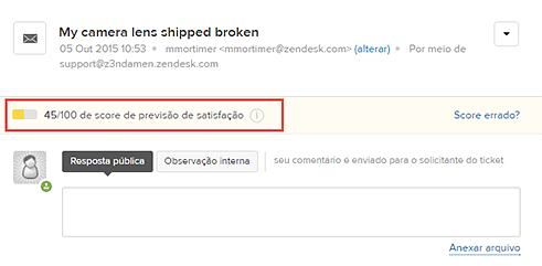 Os scores de previsão de satisfação são exibidos no Zendesk Support em vários lugares: