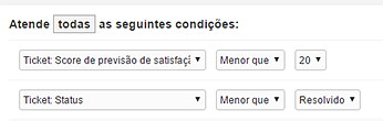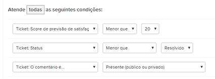 É possível usar os mesmos critérios para criar um gatilho que mande um email para agentes de suporte Nível 2 de modo que eles possam intervir no ticket em risco. Da mesma forma, é possível criar uma automação para verificar periodicamente os tickets com scores baixos e mandar o mesmo email.