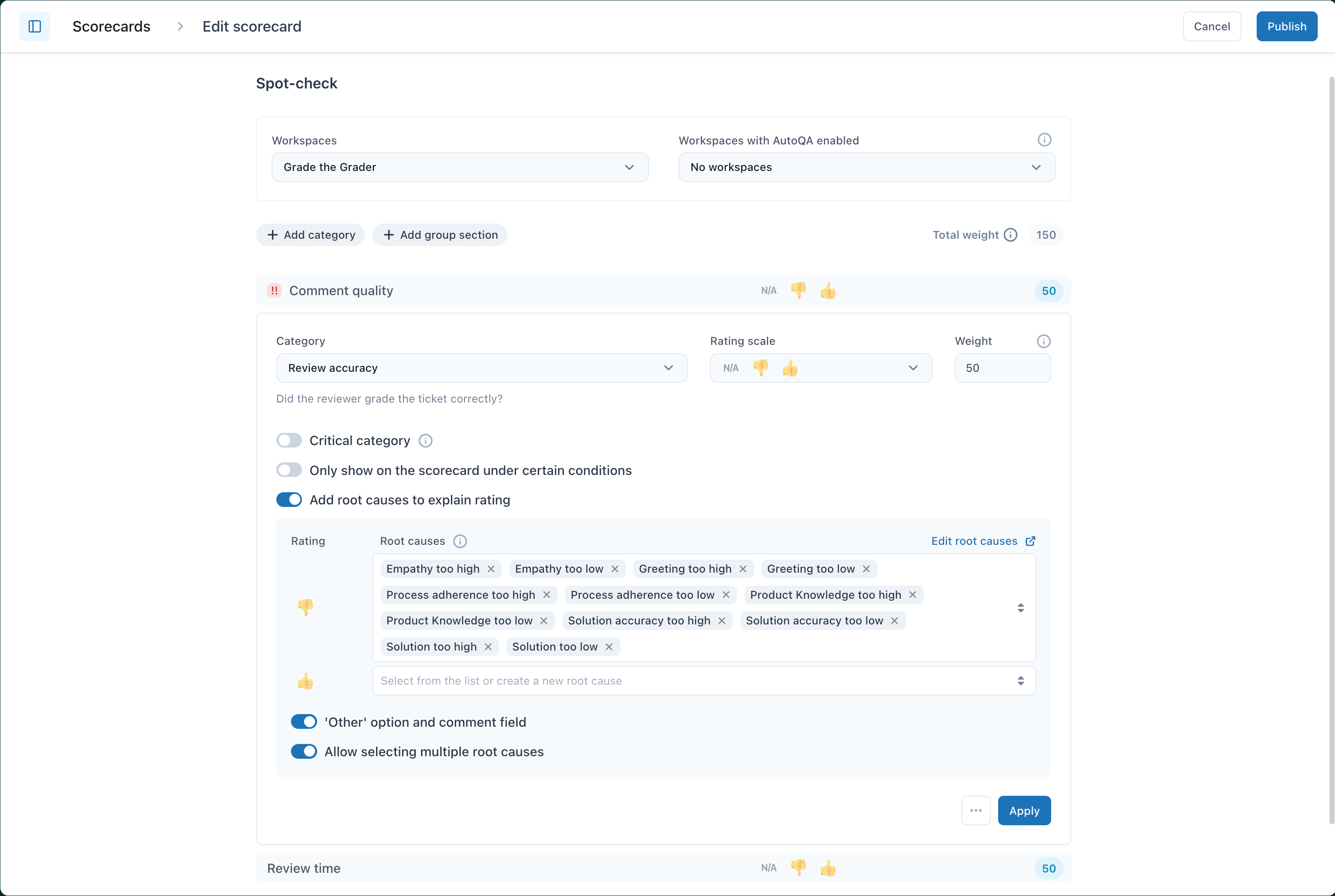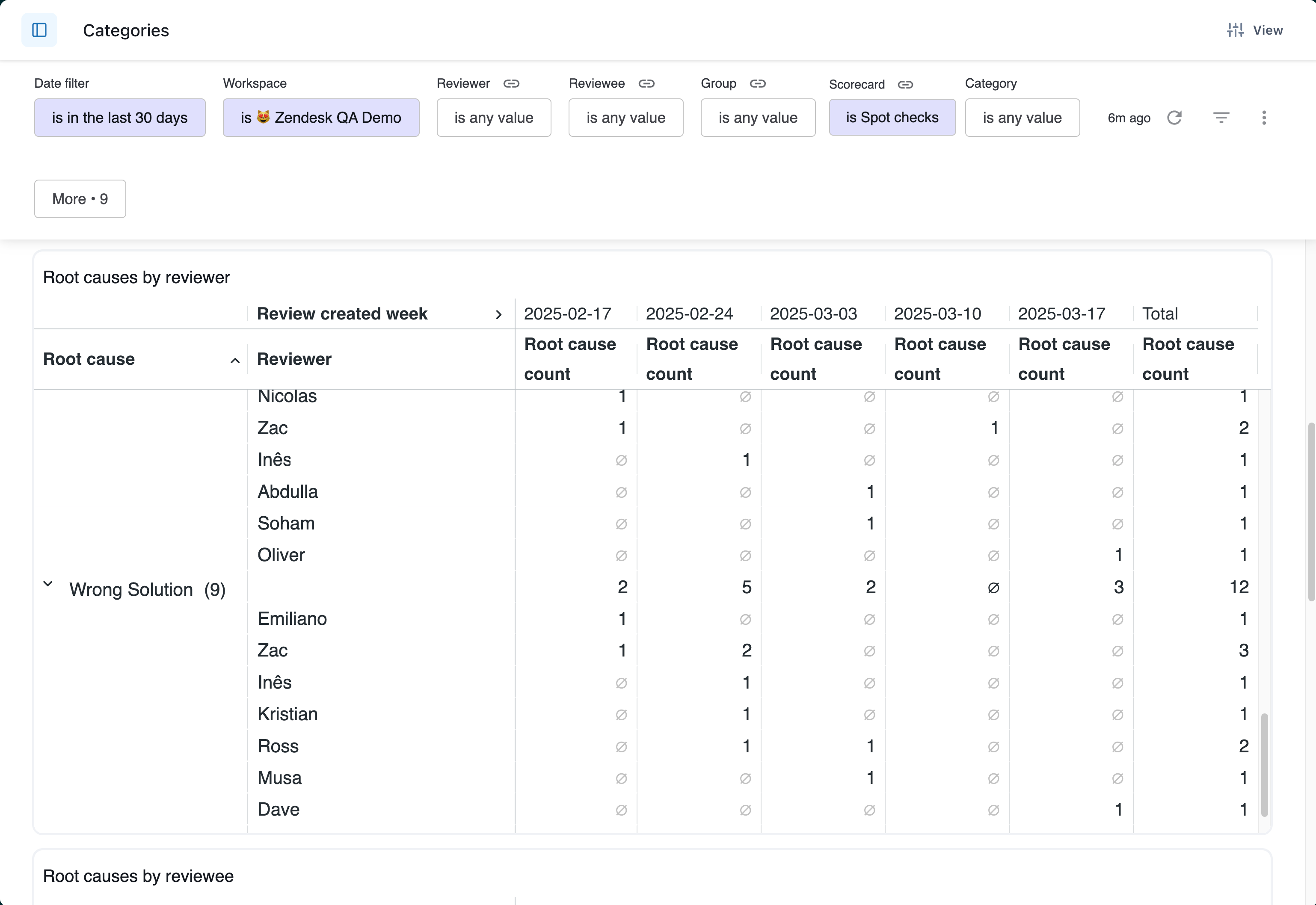 Analisar as avaliações concluídas pelos avaliadores no Zendesk QA é uma parte importante de um processo consistente e preciso de controle de qualidade. Ao fazer verificações pontuais, você pode monitorar e identificar quaisquer discrepâncias no trabalho dos avaliadores. Você pode pensar nisso como a avaliação do avaliador.