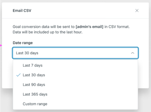 Depois de criar suas metas de mensagens, você pode enviar um CSV por e-mail para si com os dados sobre as conversões de meta. Os dados são capturados por hora, portanto o CSV pode não incluir informações do período mais recente de 60 minutos.