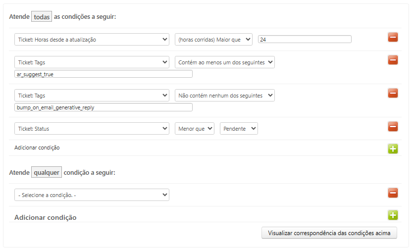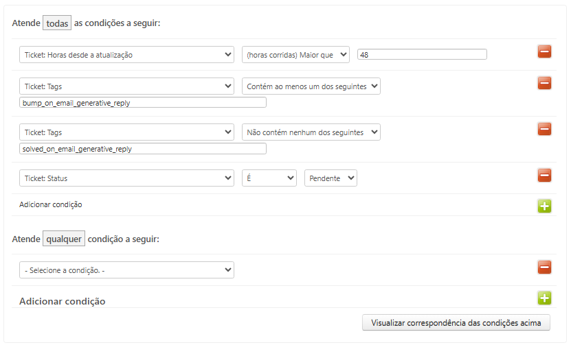 - Ticket: Tags | Contém ao menos um dos seguintes | bump_on_email_generative_reply