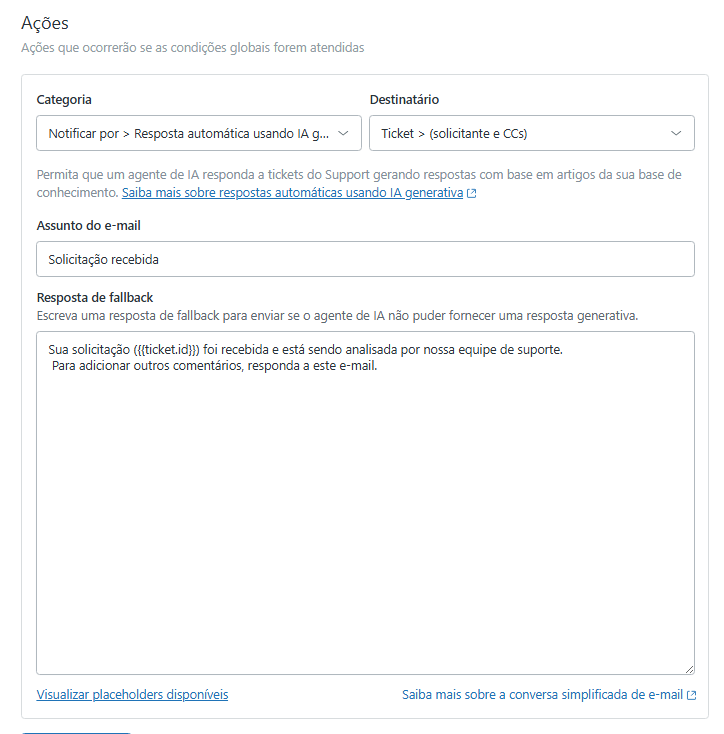 - Categoria: Notificar por > Resposta automática usando IA generativa