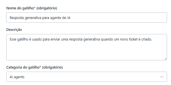 - Descrição: Esse gatilho é usado para enviar uma resposta generativa quando um novo ticket é criado.