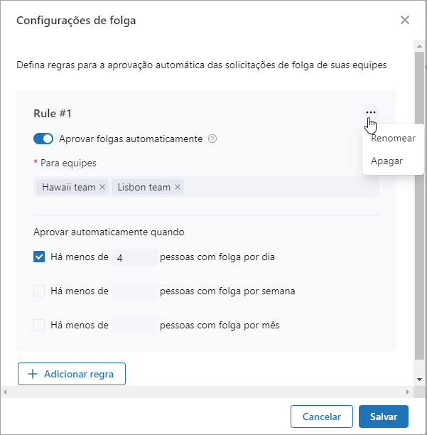 4. Clique no ícone de menu () ao lado do nome da regra e selecione Apagar.