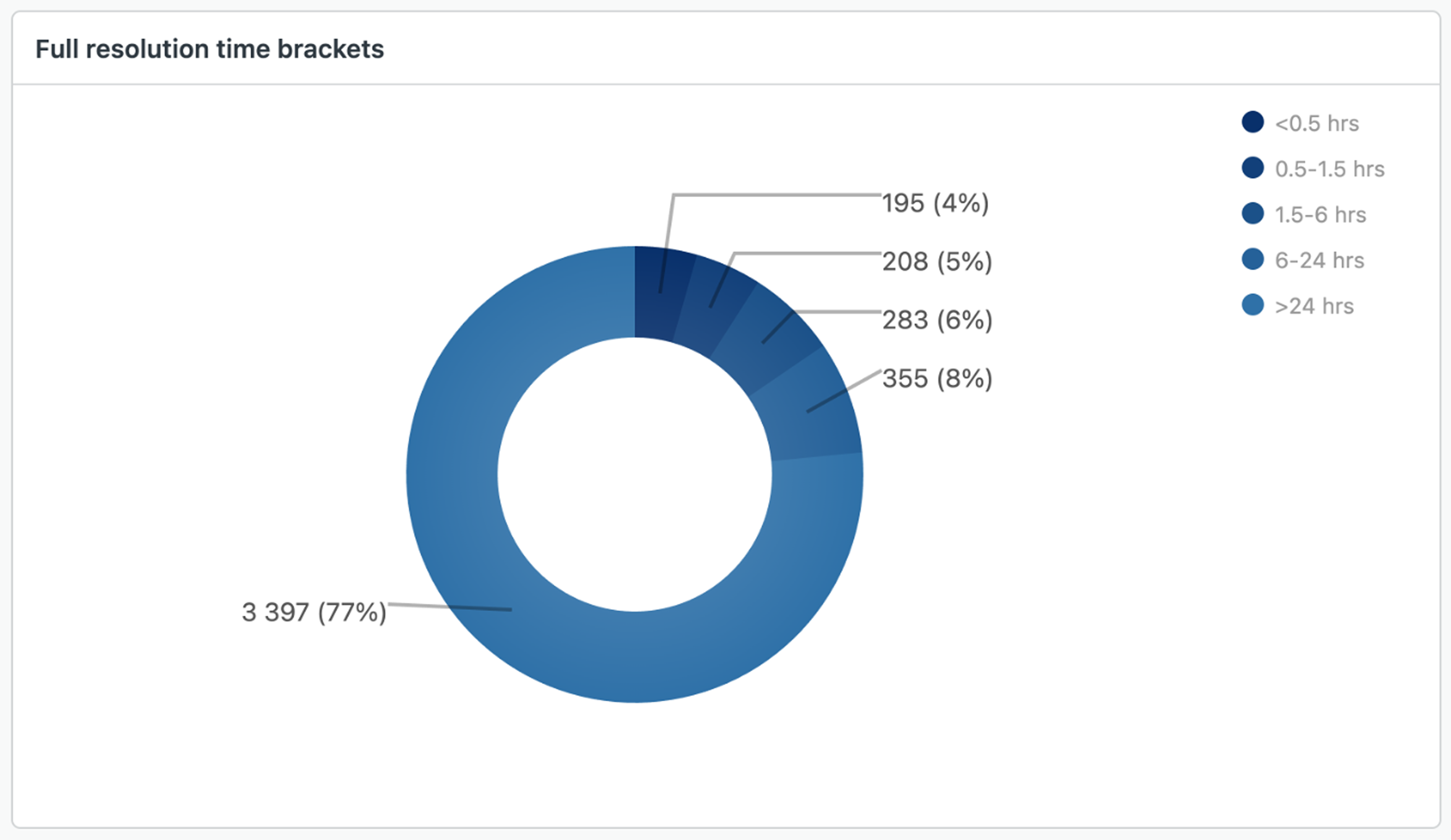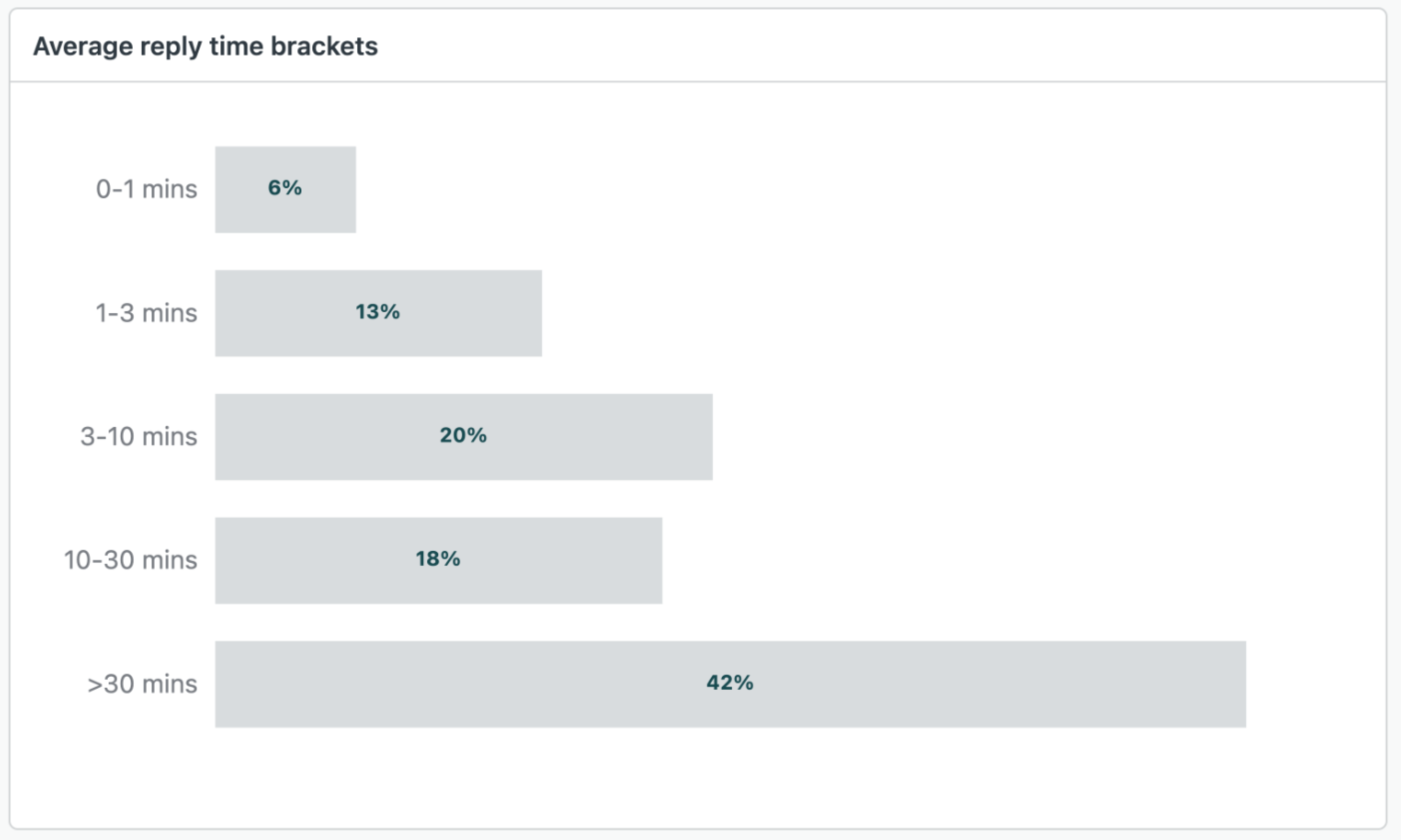 首次回复时间类别:有首次回复的消息传送工单在各预定义时间类别中所占的百分比。