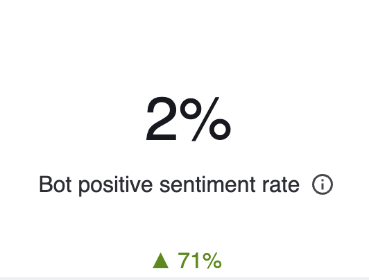智能机器人质量保证面板可帮助您了解关于人工智能专员业绩的重要指标,例如智能机器人对话升级为人工专员的频率、智能机器人陷入循环的频率、智能机器人的沟通效率被标为低于专员的沟通效率,以及智能机器人表现出负面情绪。